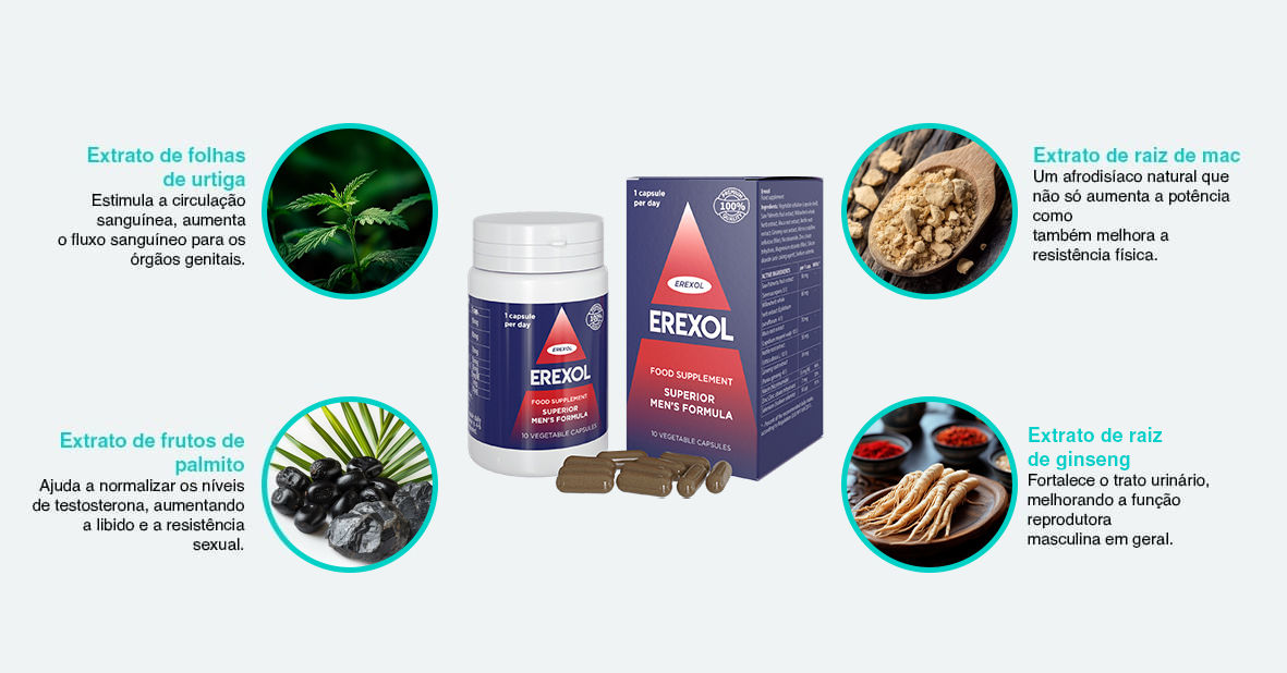 Deve compreender que o Erexol não é apenas uma cápsula, mas uma verdadeira obra da ciência e da natureza, criada com a tecnologia mais avançada.
